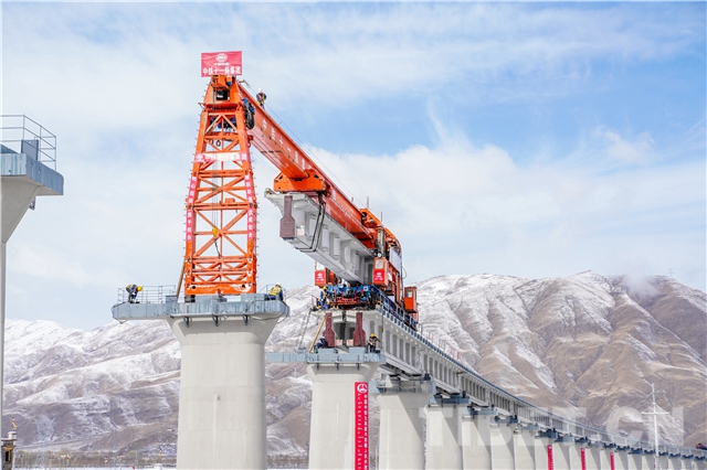 中国西藏网讯 3月28日下午,由中铁十一局三公司承担铺架任务的杰德秀Ⅰ号大桥顺利架设完成。