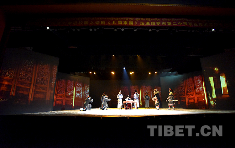 图为话剧《共同家园》在拉萨市第二中等职业技术学院的专场演出圆满落幕。