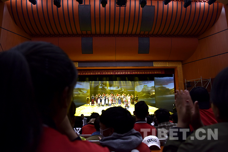 中国西藏网讯 “愿得此身长报国,何须生入玉门关。”5月14日晚,拉萨市第二中等职业技术学院学生活动中心里,随着舞台上的灯光渐渐照亮全体演员,掌声、欢呼声响彻全场。西藏自治区话剧团原创话剧《共同家园》在这里进行的第一场专场演出圆满落幕。