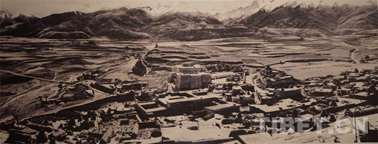 1935年红军长征途经甘孜,随后建立了甘孜县的波巴政府和白利、绒坝岔、孔萨区的波巴政府。图为当时的甘孜县城。