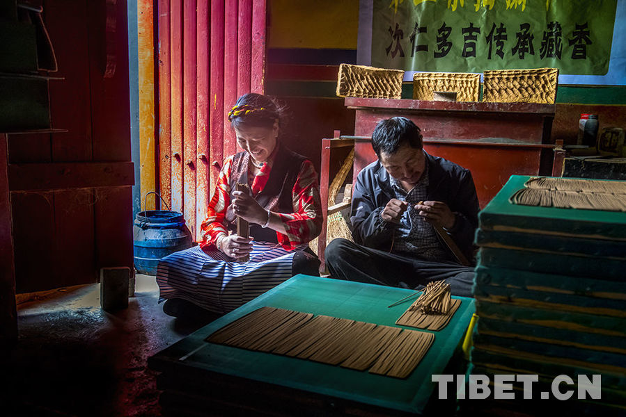 图为拉萨市尼木县吞巴村百姓依靠藏香让生活越来越好 摄影:唐集晶