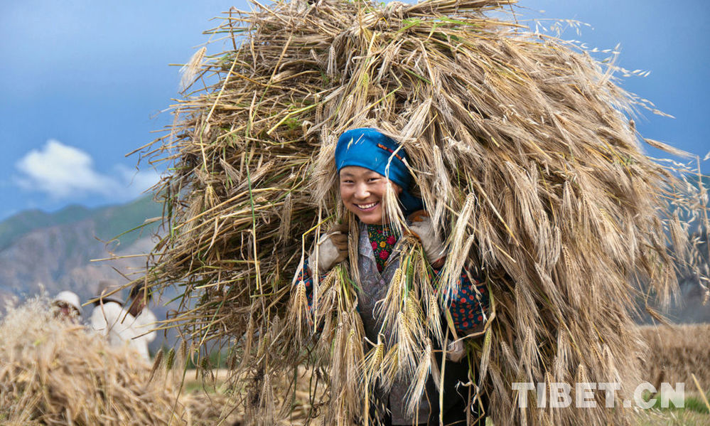 图为青稞地里喜笑颜开的藏族姑娘 摄影:雷克