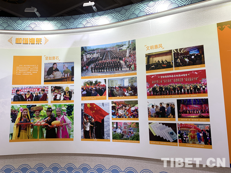 随后,在讲解员的带领下,观众来到“大美青海——新中国成立70周年青海民族自治地方发展成就展”海东市主题馆,参观了由“幸福海东”“美丽海东”“和谐海东”三大板块组成的图文展览。