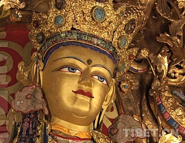 当初,不知是哪一位工匠或者主事的僧人,让一尊文殊菩萨微微地歪了一下头,倾听、关切、温情流露出来,神和人产生了连接,跨越了时空、跨越了物质、跨越了抽象、跨越了敬畏、跨越了人神……(中国西藏网 文、图/ 陈丹)