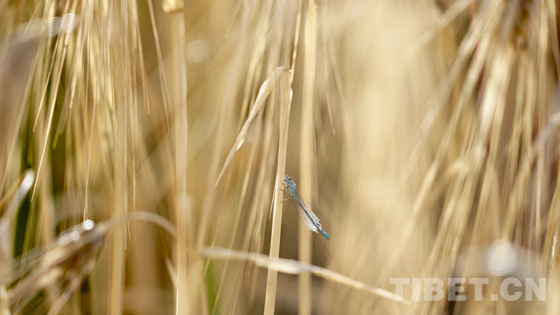 层层叠叠的斗拱,告诉我们藏地也有如此精湛灵巧的木工手艺,斗拱上的彩绘,彰显着强烈的高原性格和藏式审美。村子里简陋的小经堂,回廊里的柱子上,钉着几串珠子,不要随意去拨动它们,那是村里的老人用来记磕头次数的。白塔上的佛眼,寥寥几笔,却勾出了灵动的眼神,看着你,看着我,洞察一切。金黄色的青稞田里,成熟的香气充溢着四周的空气,一只天蓝色的豆娘停在青稞杆上,赶在人们收割粮食之前,拥抱它的秋天。