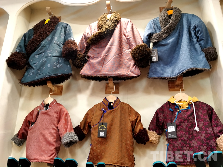 中国西藏网讯 在西藏自治区日喀则市老城区,花样繁多的藏族服装构成绚烂民族风,其中藏式童装独树一帜,吸引着南来北往家长们的目光。