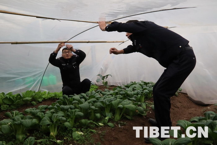 “棚中棚”蔬菜种植技术解决了该大队冬季时节高海拔蔬菜种植难题,提高了民警自给自足率,同时改善了民警生活水平,丰富了民警餐桌,让民警在恶劣的环境下也能吃到新鲜蔬菜。(中国西藏网 通讯员/龙小凤)