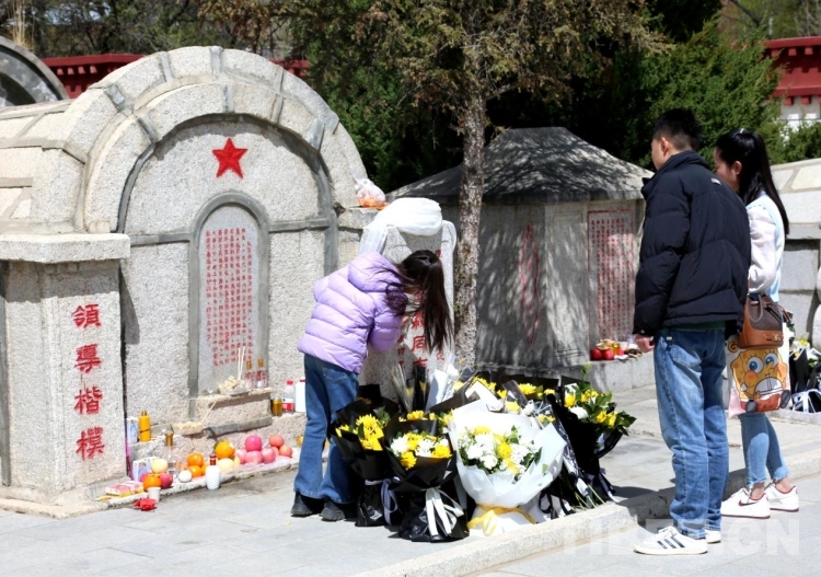 图为人民群众自发为革命烈士扫墓 摄影:王佳豪