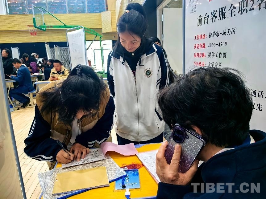 这时,一个清脆的女声响起来:“西藏的比亚迪4S店还是挺正规的,希望企业给我们学生一个机会,他们很踏实的,可以让他们试试。”说话的是西藏技师学院交通与汽车产业系汽车维修专业2班的班主任王霜,她特地赶来招聘会现场,想看看学生们的应聘情况,同时也当回“王婆”,夸夸自家孩子。