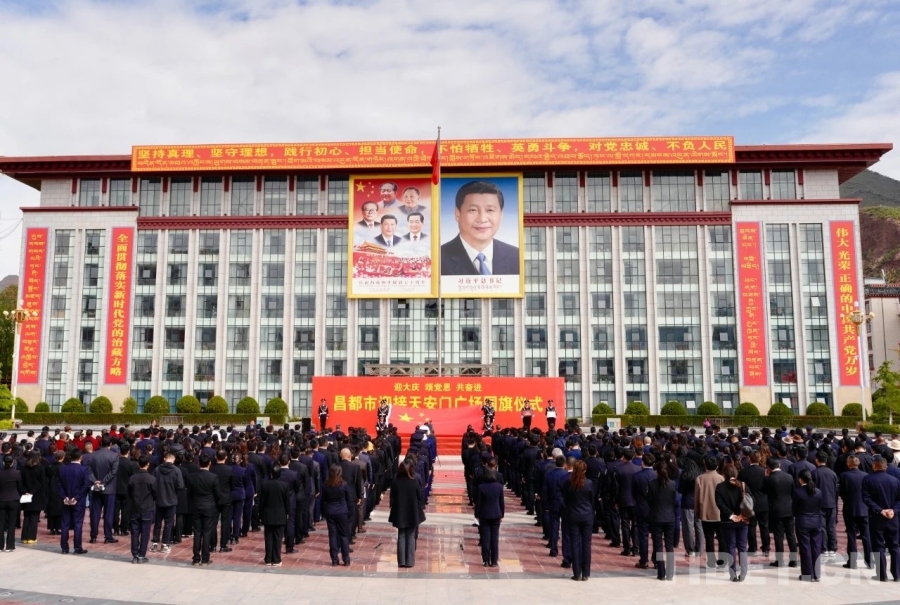 中国西藏网讯 5月26日,西藏自治区昌都市迎接天安门广场国旗仪式在解放广场举行,这面国旗曾于昌都解放70周年当日(2020年10月19日)在天安门广场飘扬。国旗护卫队护送国旗入场并展旗,与各族干部群众共享荣耀时刻。昌都市委、人大、政府、政协市级领导,市(中、区)直单位及卡若区干部职工、部队官兵、群众学生代表400余人参加。