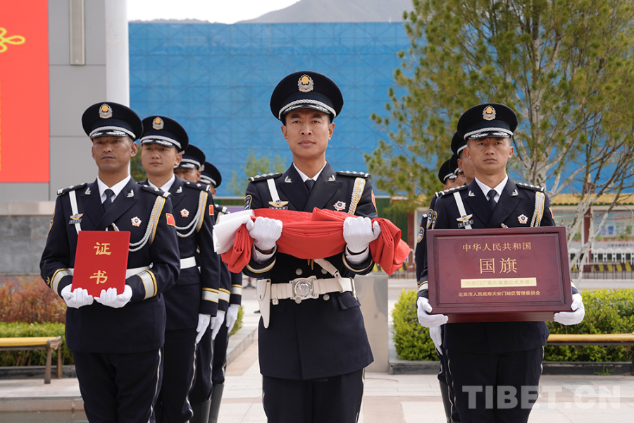 图为国旗护卫队护送国旗至昌都市革命历史博物馆 摄影:群旦次仁