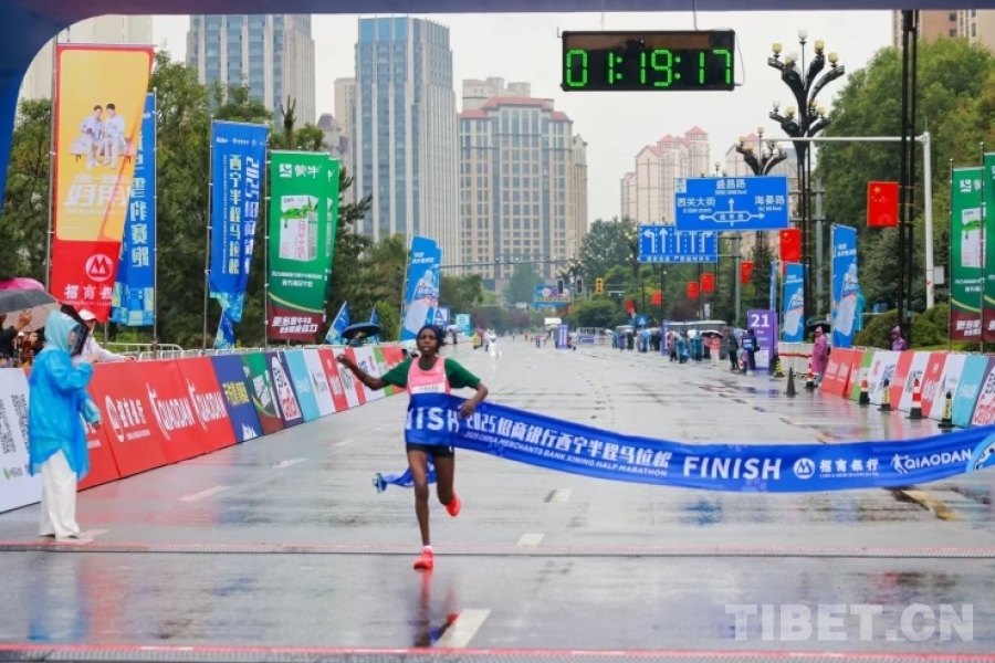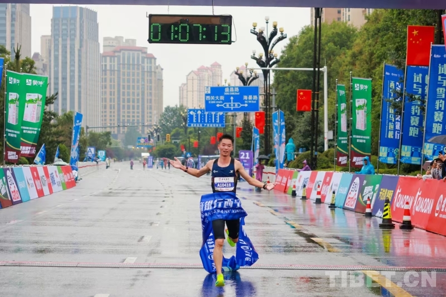 经过激烈角逐,青海名将马文良以1:07:12再次夺得男子组冠军,成功卫冕。拉先加和扎西才旦分获二三名,完赛成绩分别为1:07:48和1:07:54。女子组冠军归属肯尼亚运动员切莱斯廷,成绩为1:19:16,盖格拉毛以1:20:41获得亚军,才拉占以1:22:56获得季军。赛时的雨水天气丝毫未影响选手的拼劲和市民的热情,冲线时刻,终点区域响起选手尽情奔跑后的呐喊和观众热烈的欢呼声。