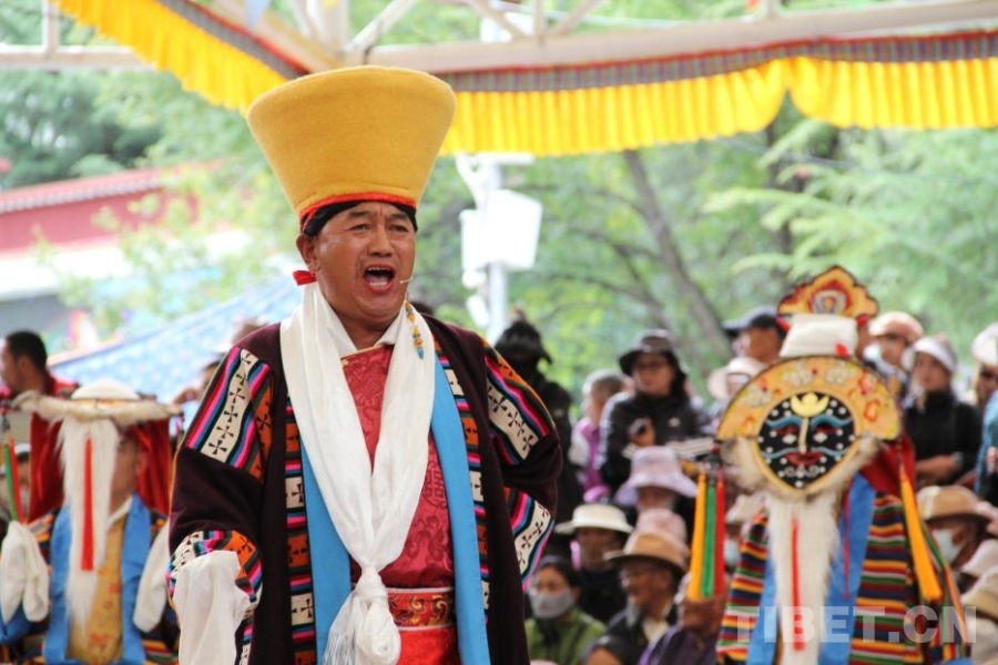 图为8月24日,雪顿节期间拉萨罗布林卡藏戏展演 摄影:赵钊