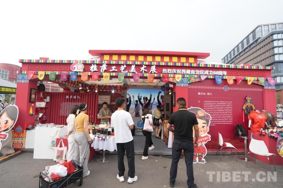 拉萨工艺美术产品展厅位于服贸会文旅服务专题展区,展厅以藏族传统建筑风格为基础,融入现代元素,分为产品展示区、工艺演示区、文化体验区、洽谈区等。