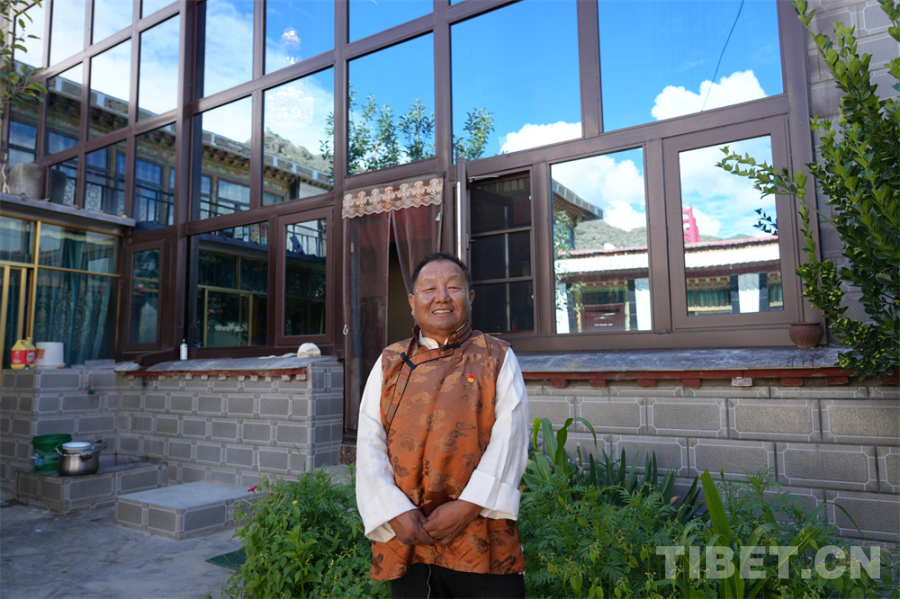 走进西藏拉萨市曲水县曲水镇茶巴朗村党委书记其加的院子,花草繁茂、干净整洁,几只雪白的小狗正欢快地摇着尾巴跑来跑去。面前的两层藏式小楼宽敞明亮,装修精美,家电齐全,阳光棚上安装着电动的拉帘。门侧建有洗漱间,干湿分离,还有大大的浴缸。