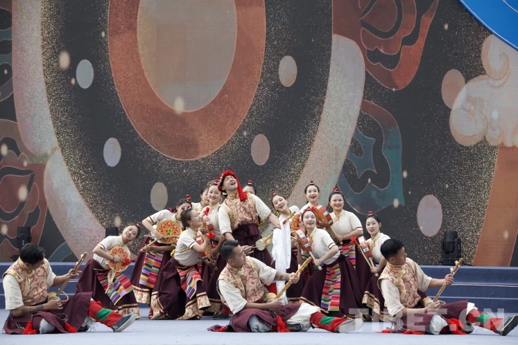 图为开幕式上的歌舞表演《欢腾的高原》 摄影:龙真多吉