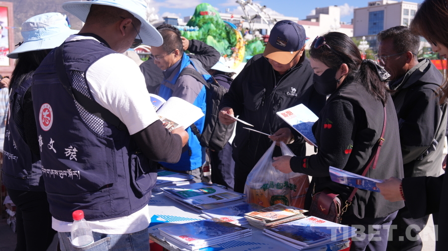 图为活动现场向市民和游客发放拉萨文旅宣传资料
