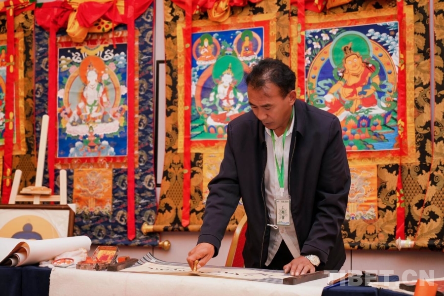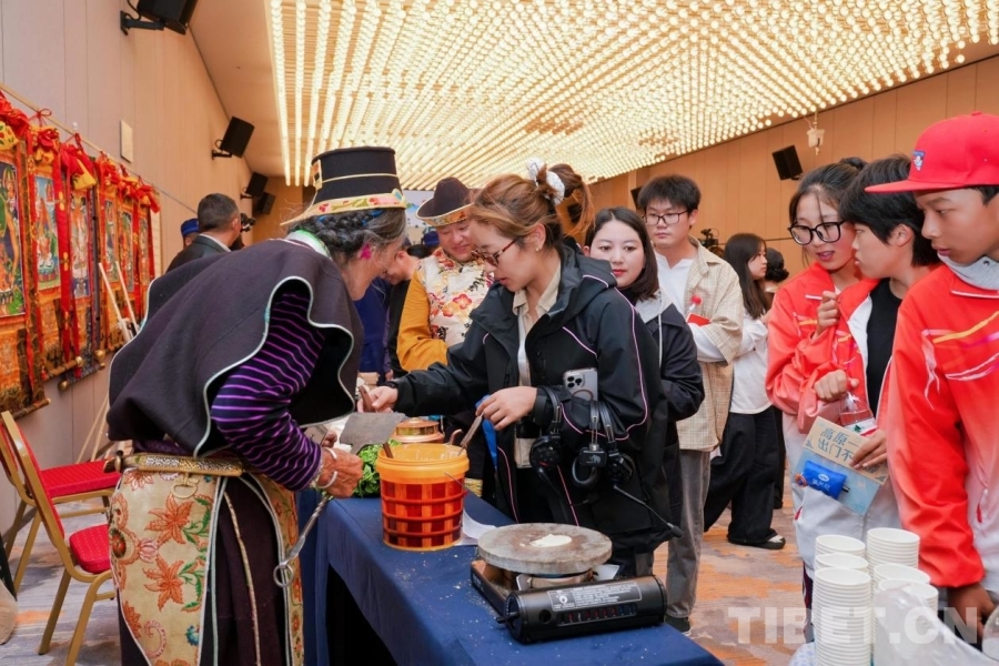 活动现场还设置了茶歇区、展览阅读区和非遗体验区。嘉宾们品尝工布阿拉酒与藏式茶点,欣赏青年艺术家画作和林芝主题图书,并亲身体验藏香制作、藏文书法、藏纸拓印等非遗项目,多维度感受林芝文化的生机与魅力。