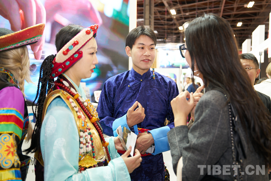 图为2025法国巴黎国际旅游专业展上旅行商向西藏团组咨询洽谈