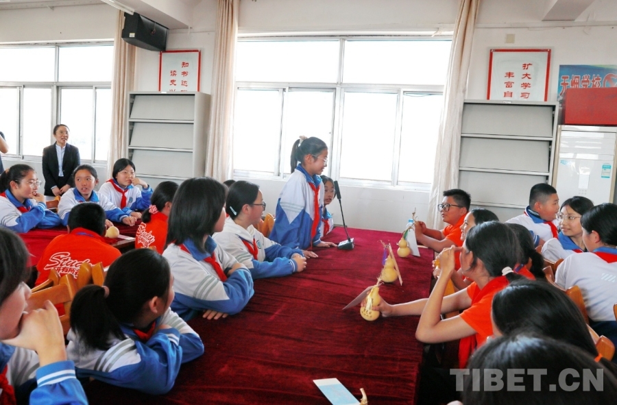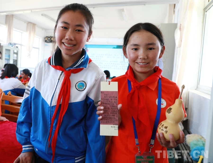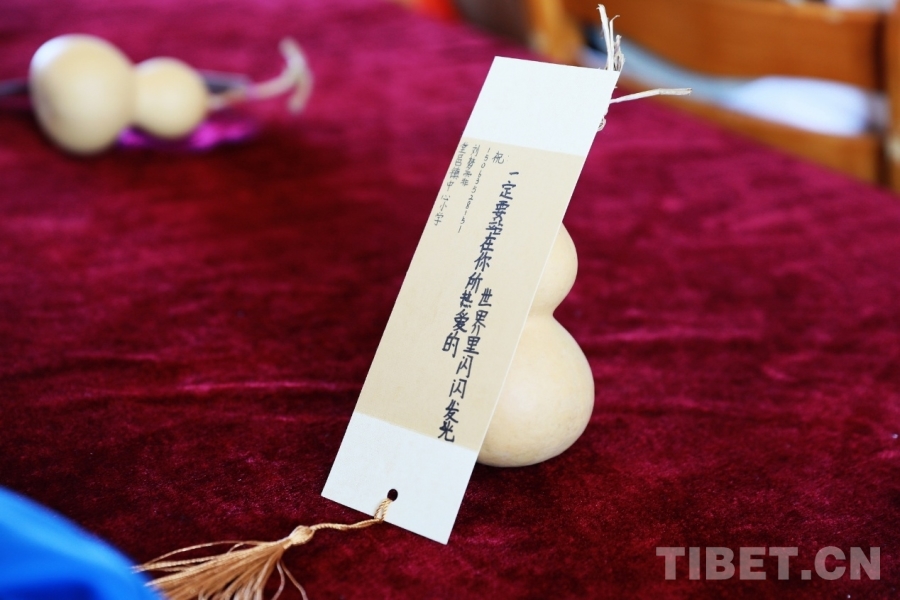 图为山东聊城堂邑镇中心小学的孩子们向西藏阿里噶尔县孔繁森小学的小伙伴赠送当地特色的葫芦和祝福卡片。每一张卡片上都有孩子们亲手写下的最想对远方的小伙伴说的祝福语、心里话。摄影:刘莉