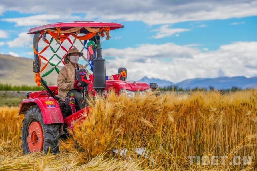 图为西藏自治区日喀则市康马县涅如麦乡丰收忙 摄影:叶轶