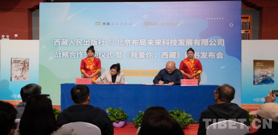 中国西藏网讯 10月14日,西藏人民出版社(西藏自治区新华书店)与北京布局未来科技发展有限公司战略合作签约仪式暨《我爱你,西藏》新书发布会在拉萨举行,相关单位代表、文旅业界代表与读者代表约90人参加活动。