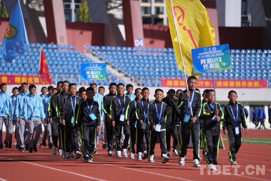 图为西藏阿里U13、U17代表队入场