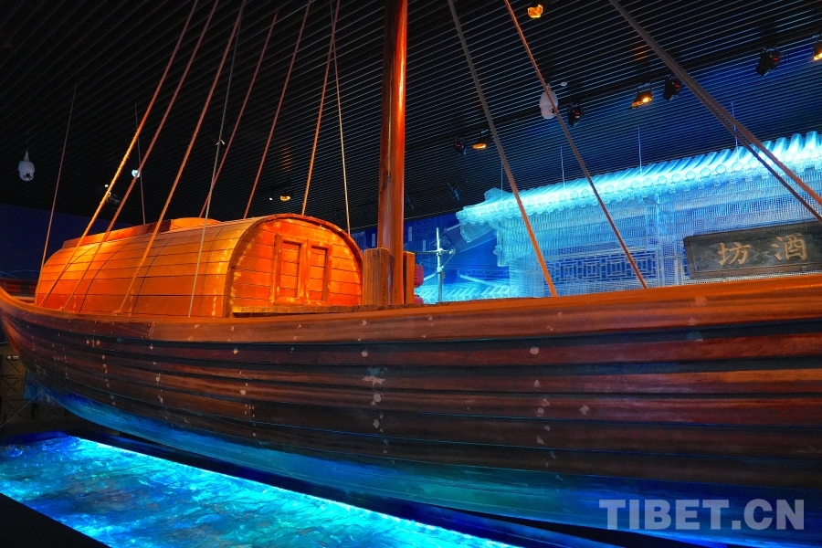 图为大运河博物馆内展出的大型船舶模型 摄影:王妍丹