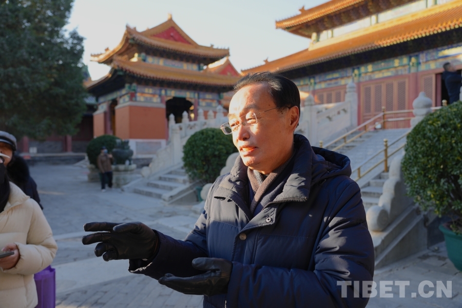 图为北京史研究会副会长马建农在景德崇圣殿前介绍相关情况 摄影:王妍丹