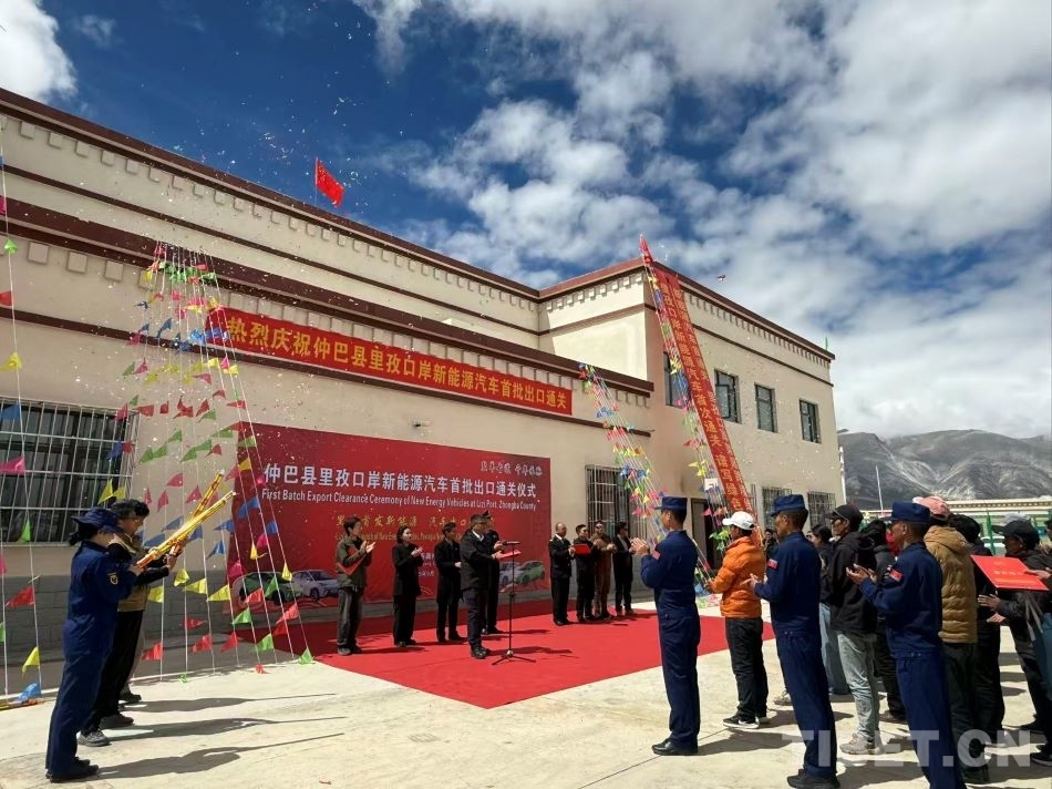 图为里孜口岸首批新能源汽车出口通关仪式现场 摄影:白玛曲珍