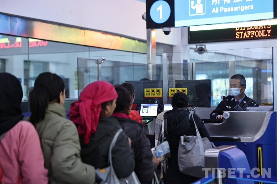 图为聂拉木边检站民警验放出入境旅客 摄影:胡定熠