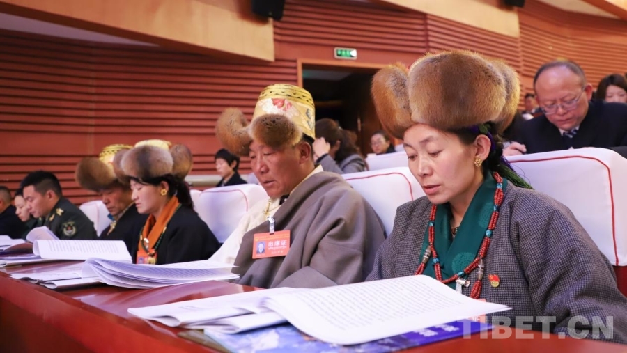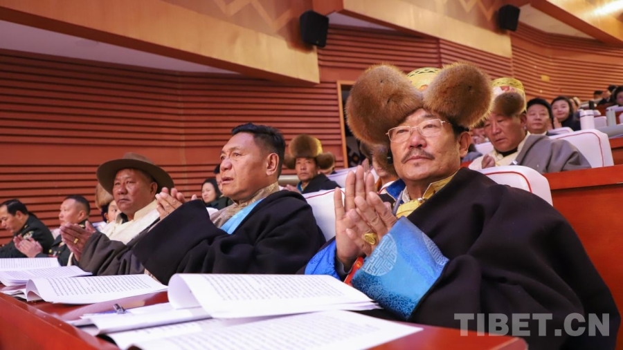 图为拉萨市十二届人大六次会议开幕会现场 摄影:贾华加