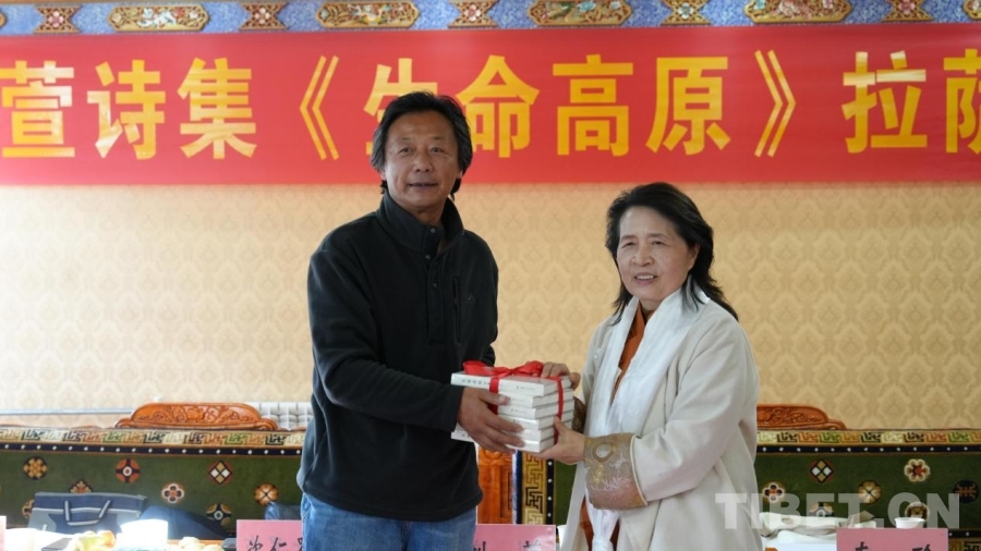 中国西藏网讯 1月15日,新年伊始,由西藏自治区文联、西藏作家协会主办的“诗与远方”的“远方”——西藏诗人刘萱诗集《生命高原》首发式在拉萨举行。西藏自治区文联、西藏作协、西藏人民出版社、西藏自治区图书馆、西藏部分作家代表以及《雪域读诗》成员共计40余人参加了首发式。