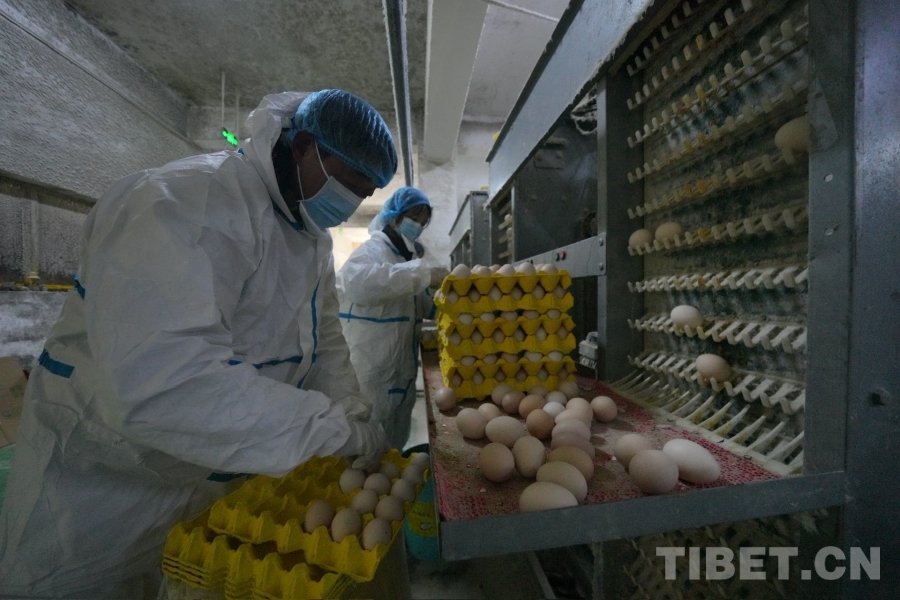 图为边坝县藏香鸡产业养殖基地生产的新鲜鸡蛋
