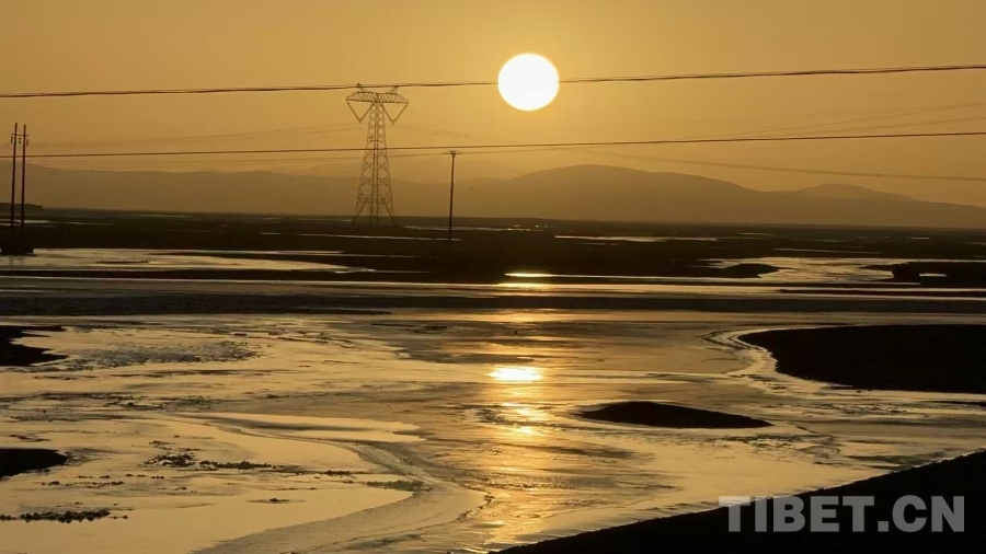 沱沱河上几乎完全解了冻,破冰的河水于源头宽阔的河床上奏响了熟悉的五线谱般的奏鸣。