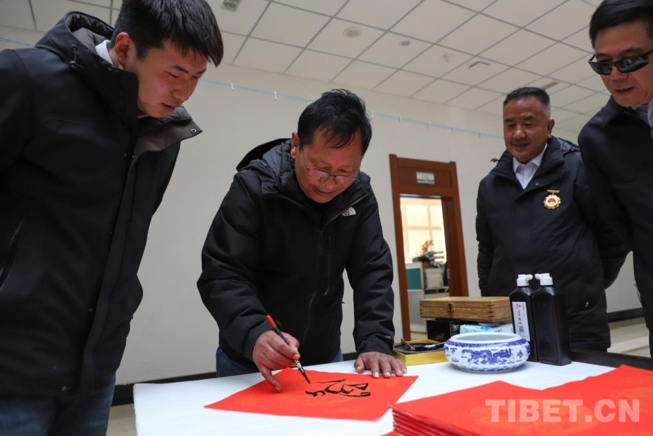中国西藏网讯 1月29日,国网西藏电力有限公司大厅内墨香四溢、红纸铺展,一片暖意融融。由西藏自治区总工会、自治区着力创建全国民族团结进步模范区专项组办公室共同主办的“翰墨迎春·情暖职工——民族团结一家亲”送福进企业活动在这里举行。