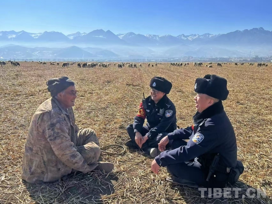 图为祁连山脚下门源车站,青藏铁警向当地群众面对面宣讲铁路安全知识,共筑平安防线
