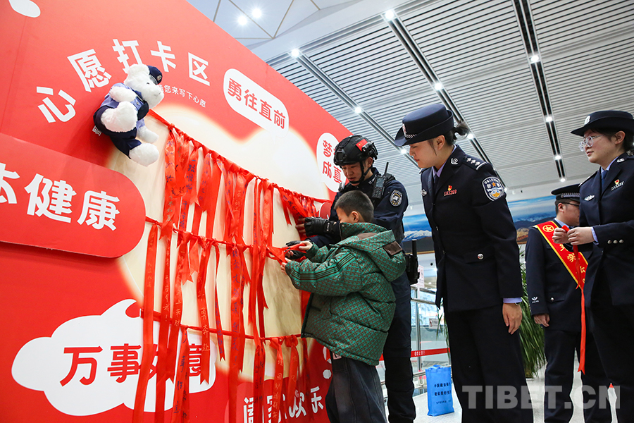 春运期间,格尔木铁路公安处在格尔木火车站候车厅创新推出“情暖回家路·天路平安驿站”主题系列活动,设置的“带着明信片去团圆”“超能警械库”“藏蓝结愿墙”“春运盲盒联”四个特色打卡台,邀请过往旅客答题集章、抽选安全提示盲盒,将旅途记忆、智慧安防、法治宣传与温情服务熔铸为春运归途中的“暖心坐标”。