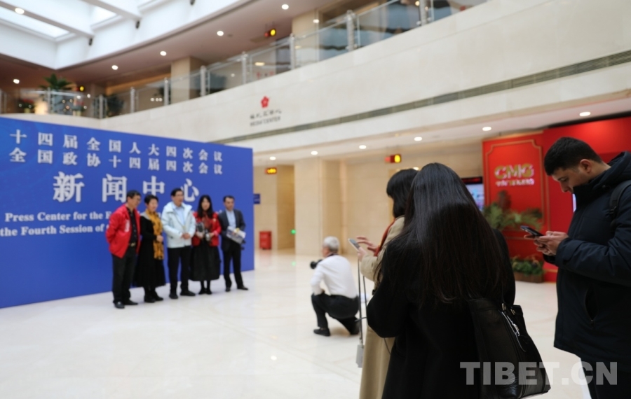 中国西藏网讯 2月28日,北京西长安街北侧梅地亚中心的2026年全国两会新闻中心启用第二天,新闻发布厅已经布置完毕,不少中外记者前来领取证件、拍摄取景。一切在井然有序中静待全国两会开幕。