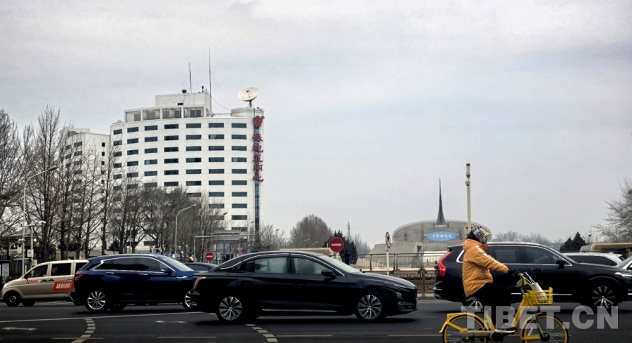 在北京西长安街南侧远眺2026年全国两会新闻中心所在地梅地亚中心 摄影:刘莉