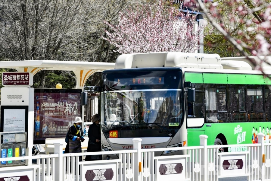 西藏拉萨慈松塘中路盛开的桃花 摄影:赵振宇