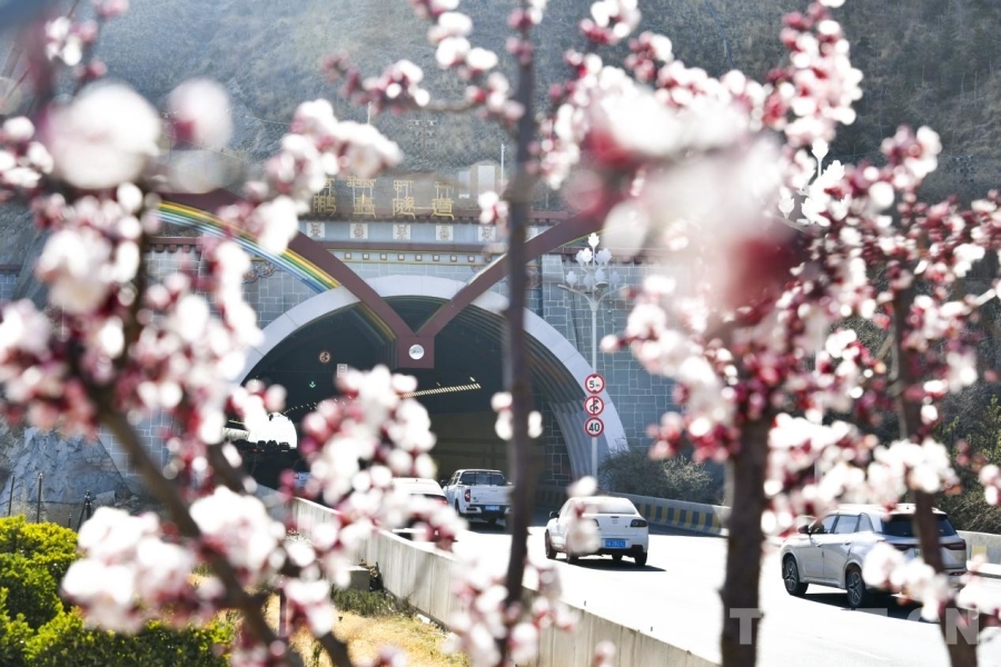 西藏拉萨南环路盛开的桃花 摄影:赵振宇