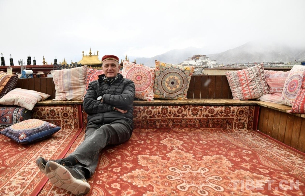 Corneliu在观景天台与布达拉宫合影 摄影:赵振宇