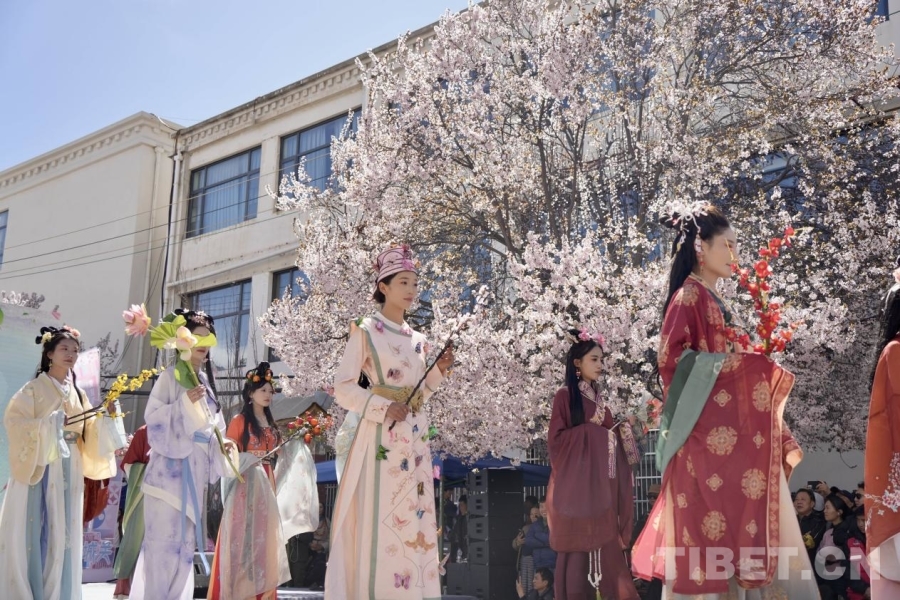 中国西藏网讯 3月25日,天朗气清,位于拉萨市城关区扎细街道军民路的春花正开得热闹。一场以“党建引领传文脉·古韵华章颂芳华”为主题的纪念西藏民主改革67周年暨繁花映春传统文化服饰展演活动,在这里举行。城关区干部职工、周边居民、往来游客聚在一起,在花影与衣香之间,共度了一个春意浓浓的下午。