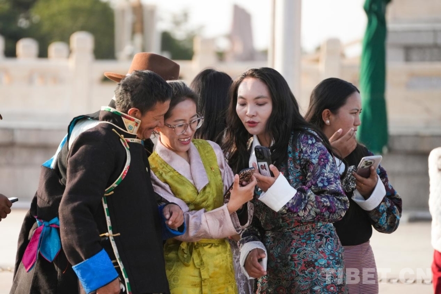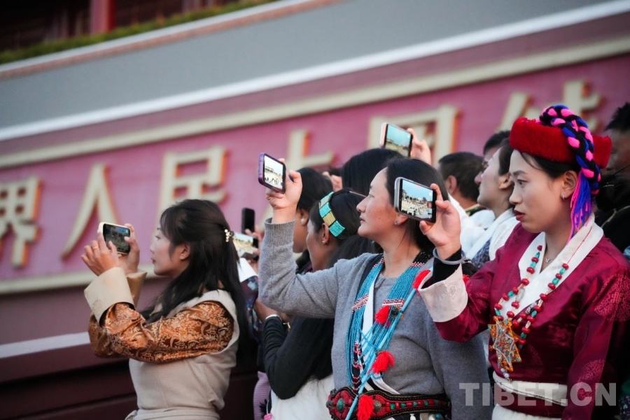 中国西藏网讯 3月27日,晨曦微露,天安门广场神圣庄严。来自西藏山南的基层群众代表团身着多彩民族盛装,怀揣雪域儿女的赤诚,静静伫立在观礼台上,等待那庄严一刻。