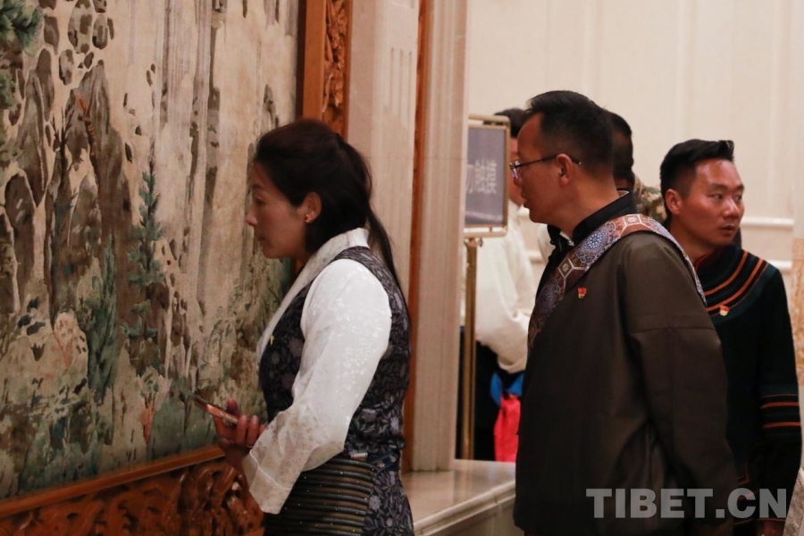 人民大会堂里,代表团成员认真参观 摄影:陈卫国