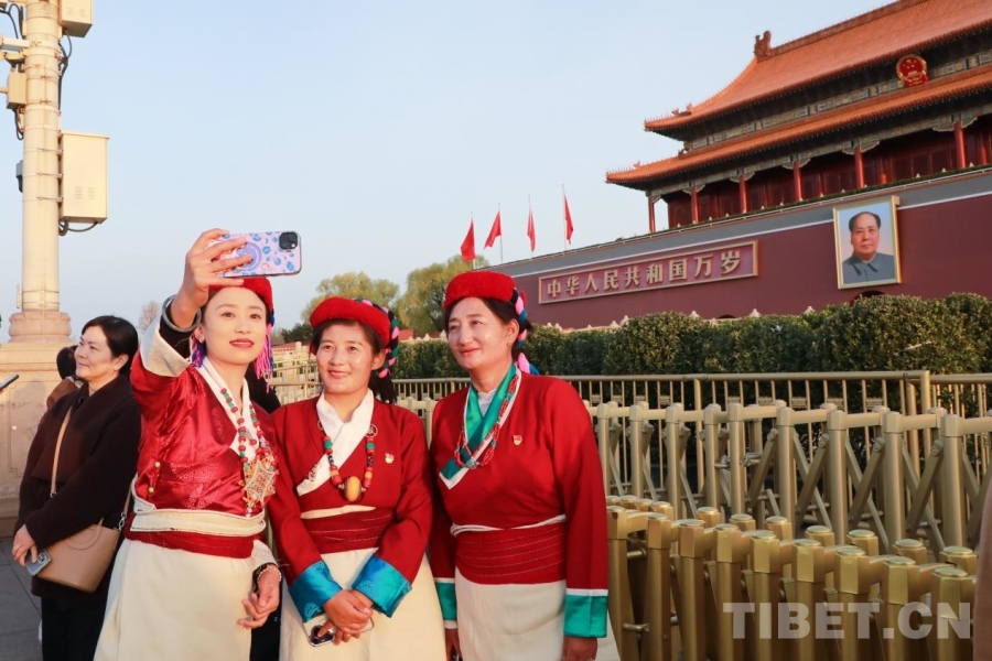 来自错那市的代表团成员在天安门前合影留念 摄影:陈卫国