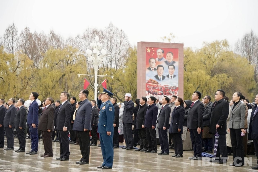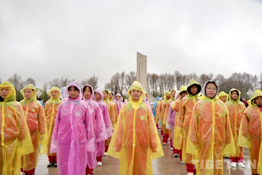 3月28日,来自拉萨市的学生群体参加升旗仪式