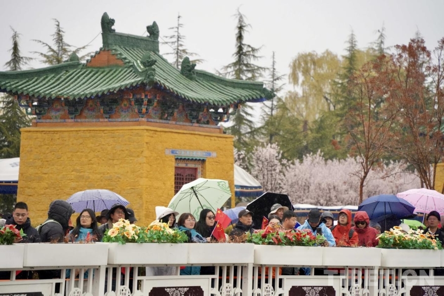 清晨的布达拉宫广场,红墙白宫在纷扬的雪幕中巍然矗立,广场中央摆放的“3·28西藏翻身农奴的节日”字样的鲜花格外醒目。来自全区的各族各界代表身着节日盛装,冒着风雪早早来到现场,整齐列队。