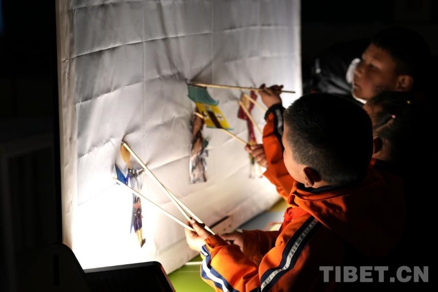 孩子们用自己亲手制作的皮影表演